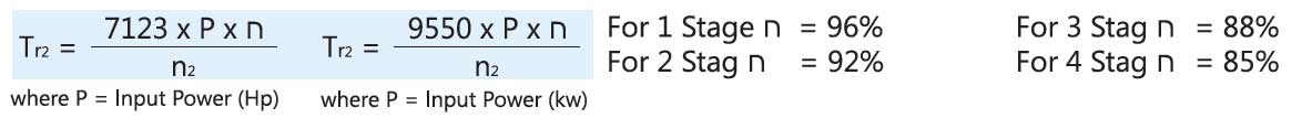 This is net Torque delivered to output shaft while prime mover of capacity P (Kw/Hp) coupled gear drive.