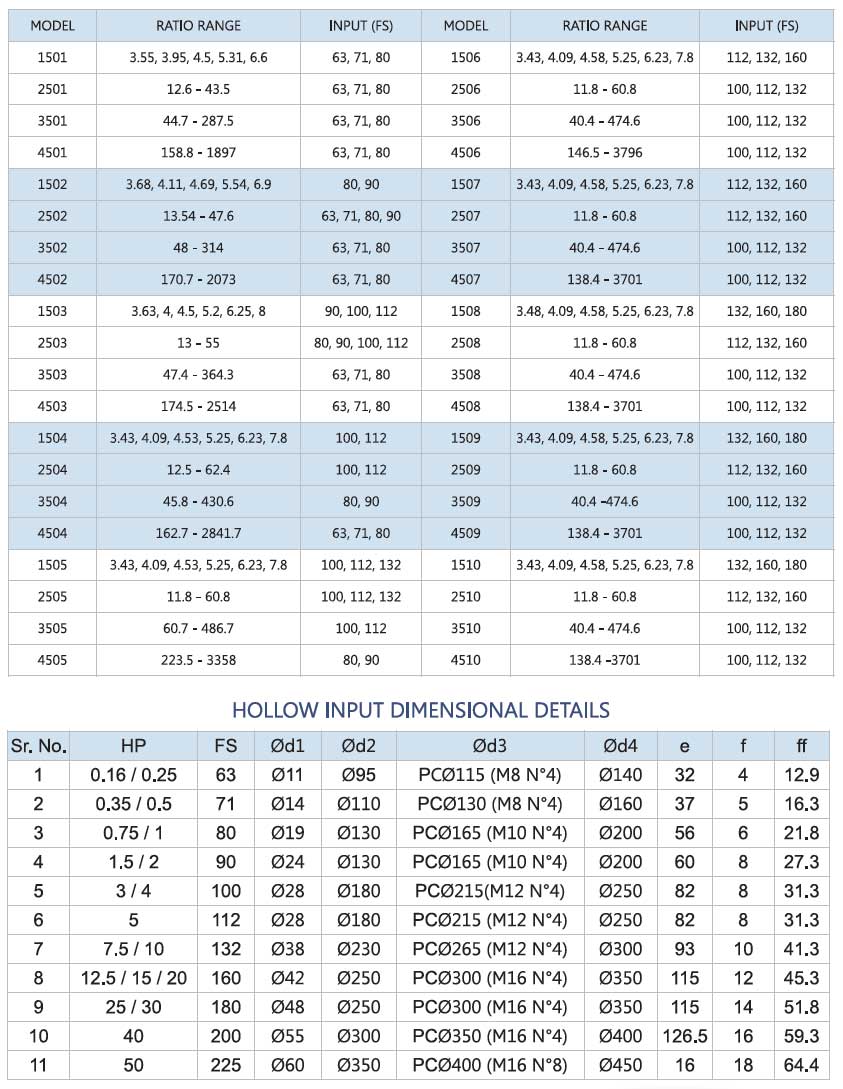 - O> Input : Hollow to suite 63 Fs to 355 fs & male free shaft