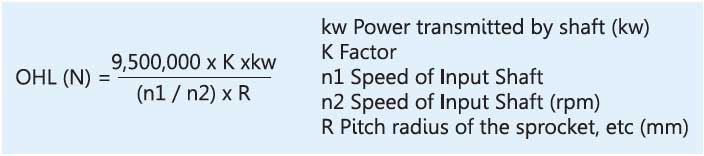Permissible radial and axial load carrying capacity of the gear drive isbased on the nominal bearing life chosen.When a sprocket , gear or pully is mounted on the input or output side of the shaft, radial load (overhung load) will act on the shaft and consequently on the bearings.